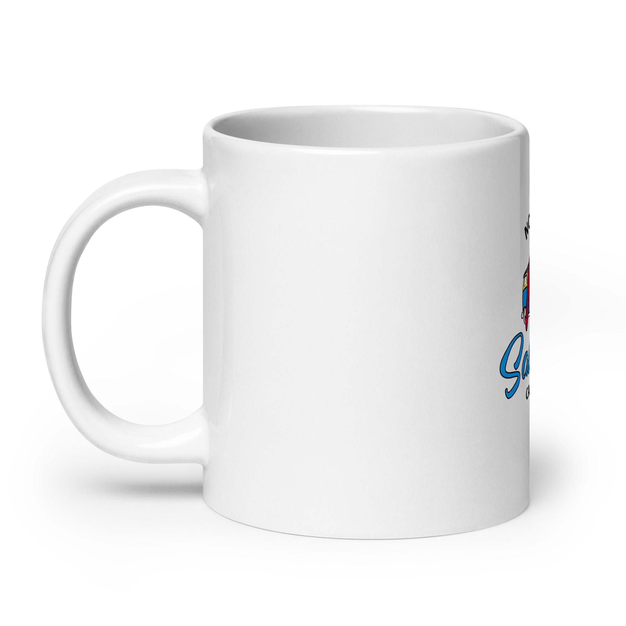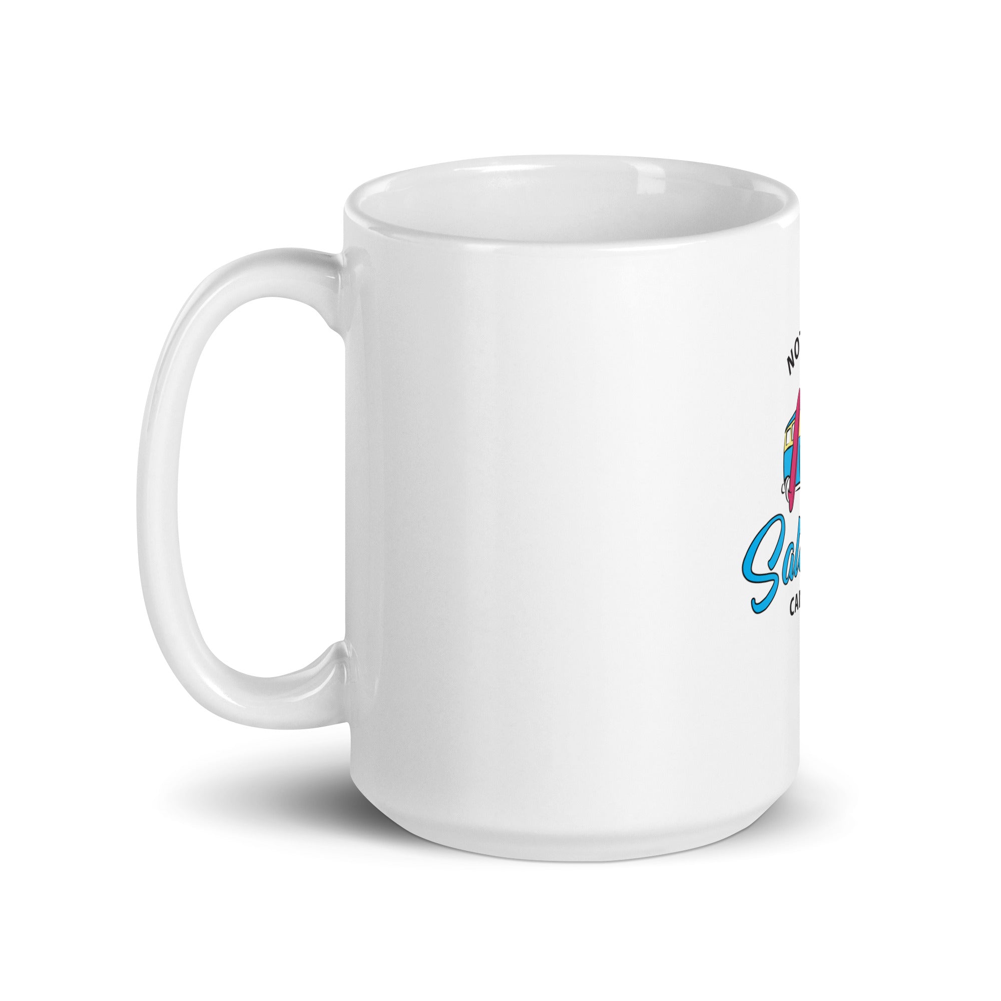 Start your day the groovy way! This white ceramic mug features a throwback design with a vintage hippie van, surfboards stacked high, and a wave-chasing spirit that says, "Catch ya on the next tide!"